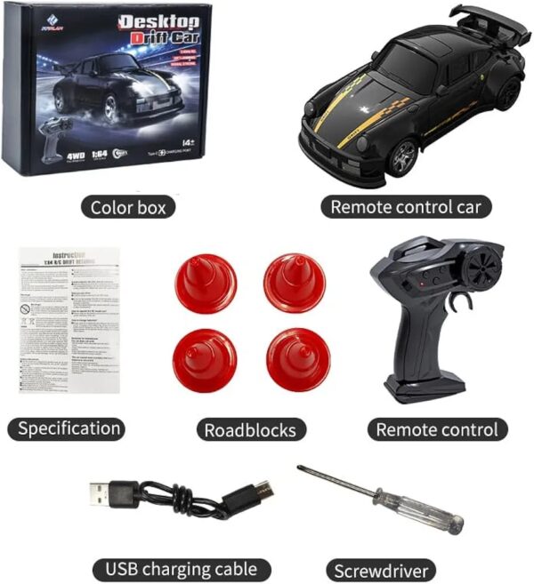 With a stylish black finish and durable build, this mini RC car is both attractive and long-lasting. The 2.4GHz remote control system ensures stable, interference-free operation, allowing you to enjoy uninterrupted racing fun.